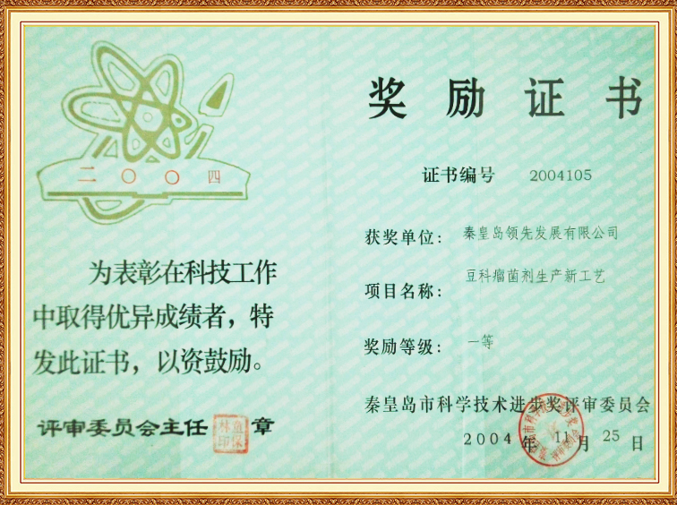 豆科瘤菌劑生產(chǎn)新工藝—秦皇島科學(xué)技術(shù)進步一等獎